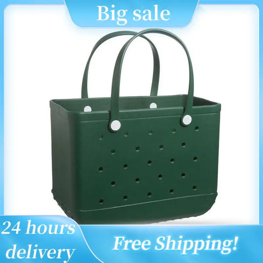 Extra Large Boggs Beach Bag Summer EVA Beach Basket Women Picnic Tote Bag Holes Waterproof Handbag Pouch Shopping Shoulder Bag